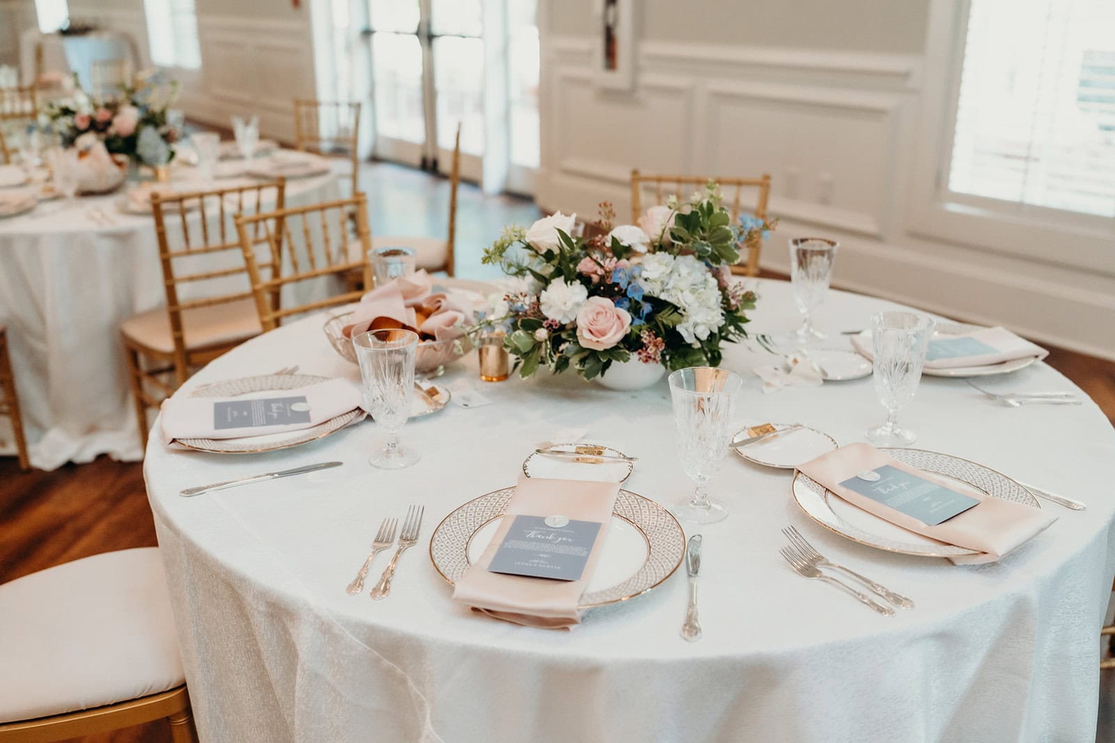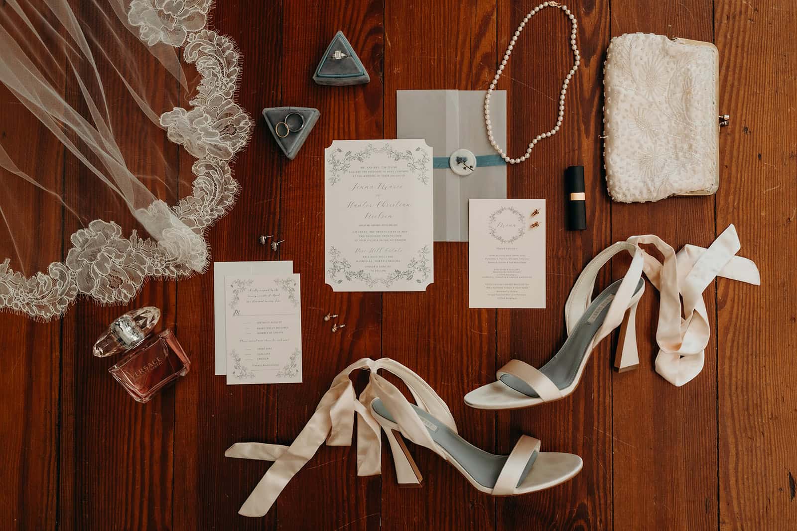 Jenna and Hunter tied the knot on May 25, 2024, at the timelessly elegant Rose Hill Estate in Nashville, NC. Their color palette of dusty blues, soft blush, and crisp whites set the stage for a day that was equal parts romantic and refined. From the very beginning, their wedding day was filled with thoughtful details, laughter, and just the right touch of glamour.