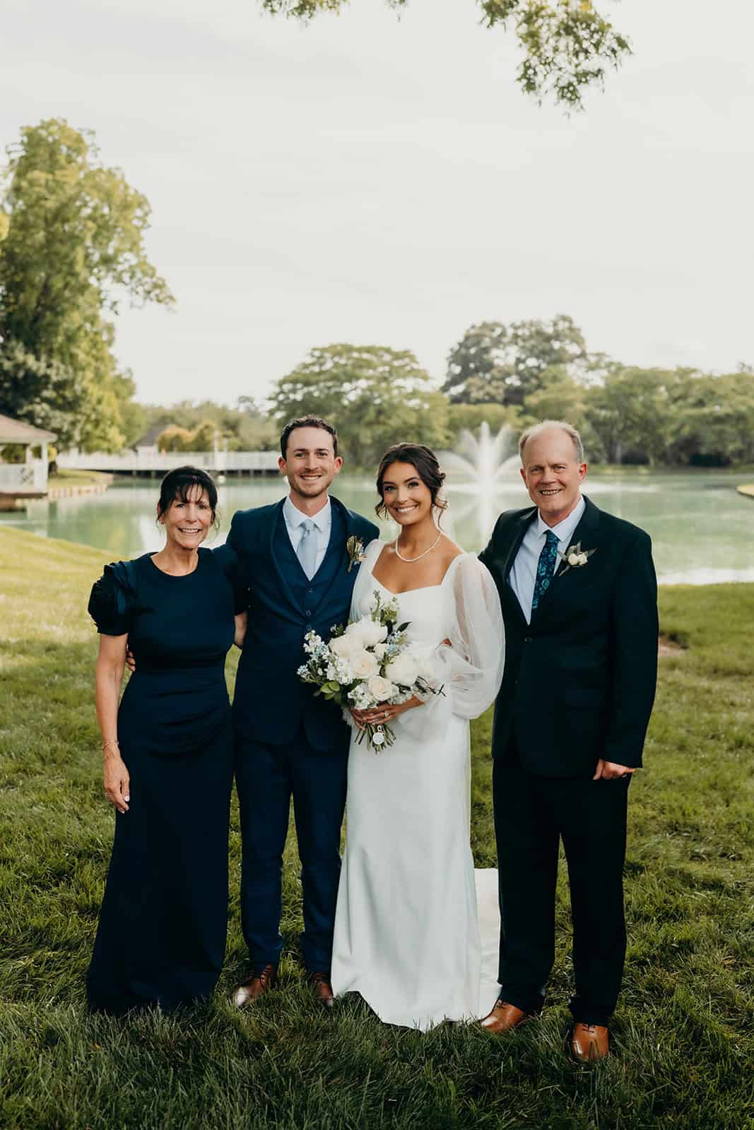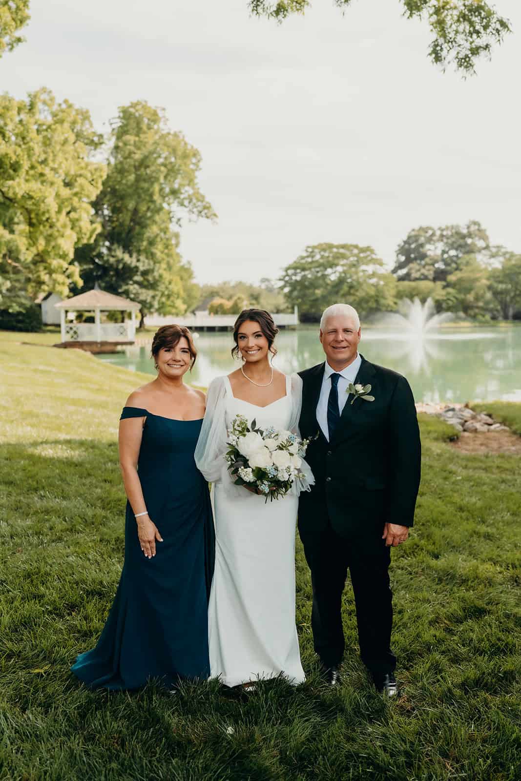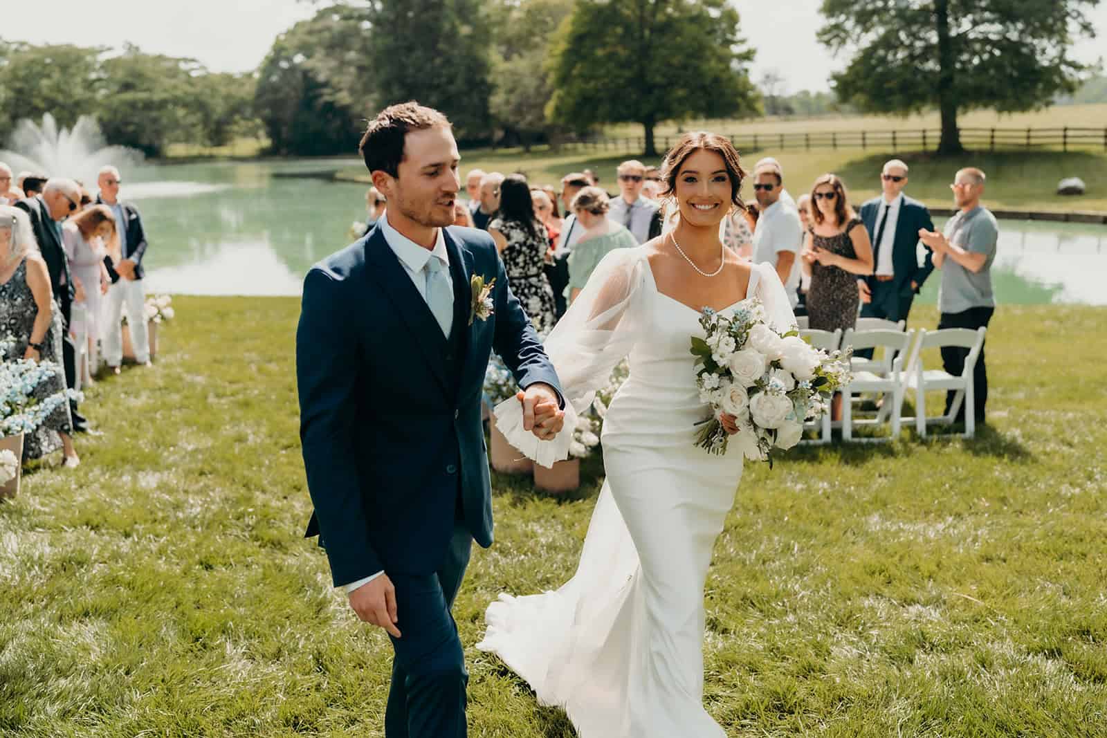 Rose Hill’s swan lake created a dreamy backdrop for the ceremony. Guests were welcomed by the fresh scent of flowers, with baskets of blooms lining the aisle in a display that was as fragrant as it was beautiful. A live cellist filled the air with music, creating an atmosphere that felt both intimate and unforgettable as Jenna walked down the aisle to meet her groom.